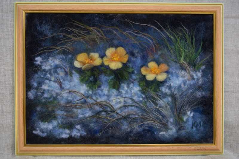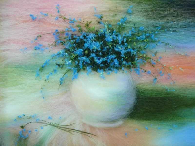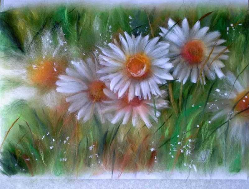 Картина из шерсти с изображением цветов внесет в дом уют и хорошее настроение.