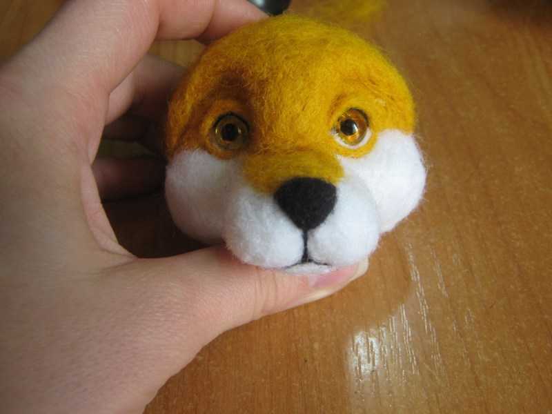Начинать нужно с легких движений и постепенно увеличивать силу нажатия. Таким образом накладывается необходимое количество слоев, а на завершающем слое выкладывается рисунок из цветной шерсти.